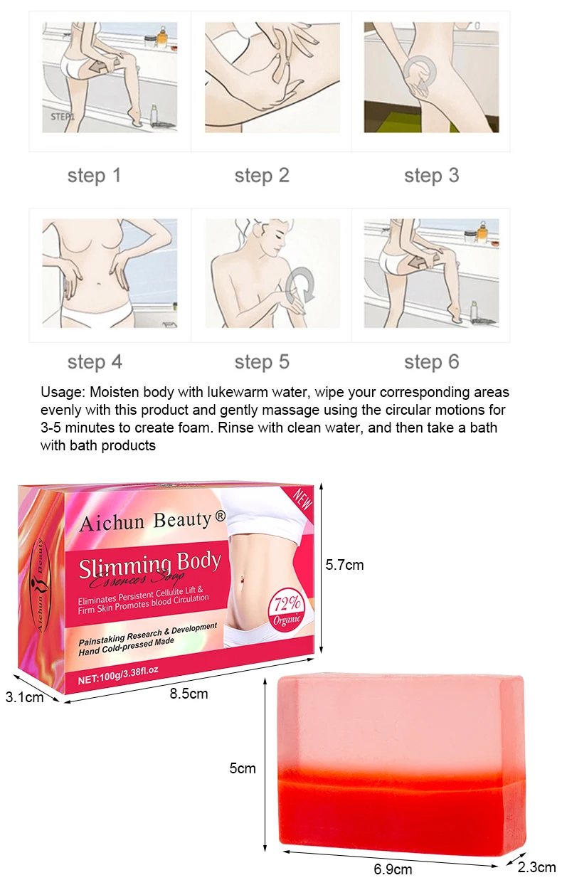 Buy Aichun Beauty Slimming Body Essence Soap 100g at the best price in Pakistan from ShoppingPoint.com.pk. It is a refreshing herbal soap designed to deeply cleanse, improve skin firmness, and leave your body smooth and energized. Enriched with plant-based essences, it supports a toned appearance by maintaining the balance of moisture. Perfect for daily use, it leaves the skin soft, healthy-looking, and beautifully refreshed.