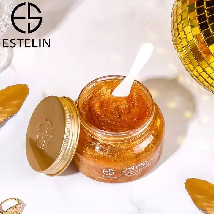 The Estelin 24K Gold Body and Face Scrub 250g is a luxurious exfoliator that revitalizes your skin with a radiant glow. Infused with real 24K gold particles, it gently removes dead skin cells, impurities, and dullness while nourishing deeply. Suitable for face and body, it leaves skin soft, smooth, and visibly luminous, giving you a spa-like experience at home.