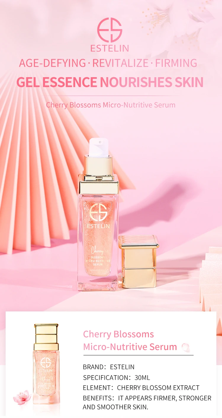 This is Estelin Cherry Blossoms Micro-Nutritive Serum 30ml Nourish and revitalize your skin with this delicate cherry blossom serum. Packed with micro-nutrients, it hydrates, soothes, and improves skin texture, leaving it soft and glowing. Lightweight and fast-absorbing, it restores vitality while promoting a healthy, radiant complexion. Ideal for daily use, it helps your skin look refreshed, smooth, and beautifully rejuvenated.